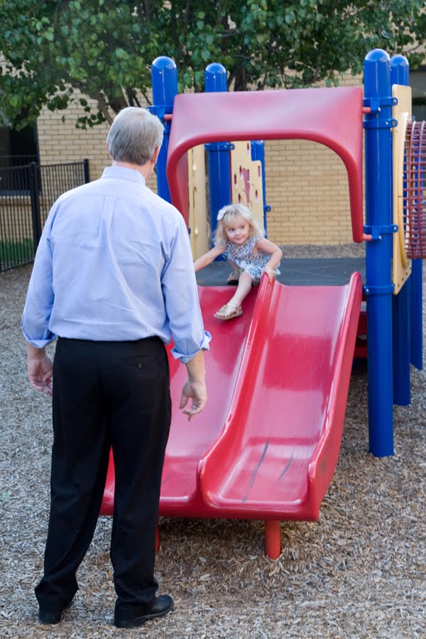 On the way to the reception after the ceremony, Bella found the playground. And went DIRECTLY to it. PawPaw had slide-duty for a while!