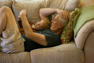 That evening before bedtime, JT crawled up on the couch with Granddad to play with cars and get lots of tickling!